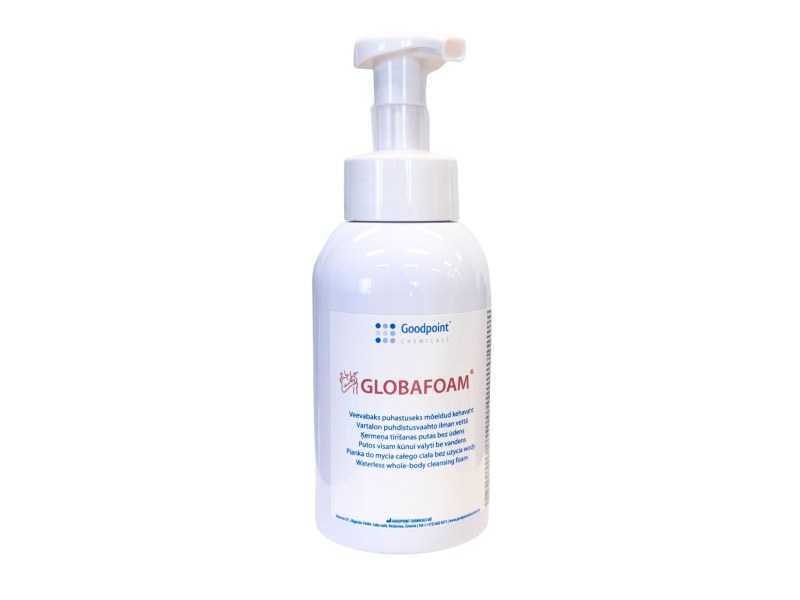 Ο GLOBAFOAM® είναι ένας αφρός ολόσωμου καθαρισμού χωρίς νερό, ειδικά σχεδιασμένος για καθημερινή υγιεινή. Περιέχει φυσικό γαλακτικό οξύ από το Lacto-intensive ενεργό σύμπλεγμα, που υποστηρίζει και προστατεύει την φυσική ισορροπία του pH και την υγεία του δέρματος. Διασφαλίζει φρεσκάδα και προλαμβάνει δυσάρεστες οσμές.