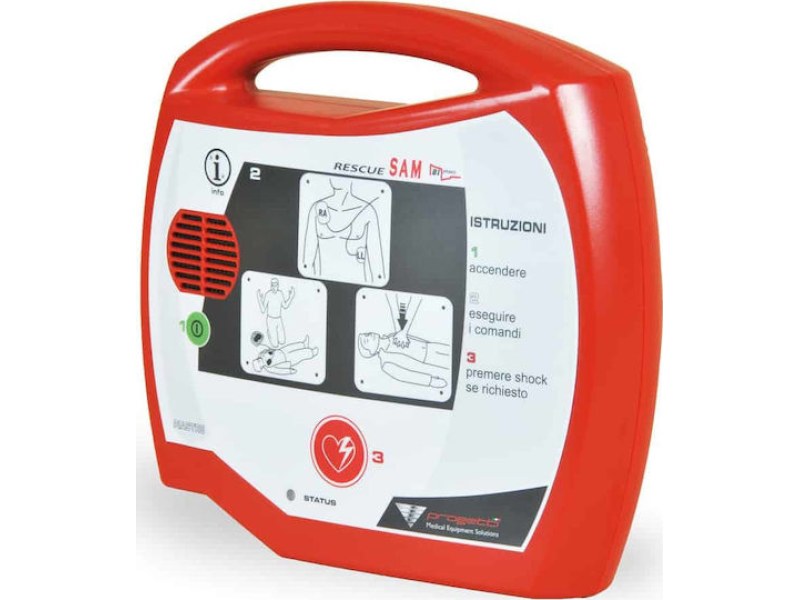 Ο RESCUE SAM είναι ένας σύγχρονος φορητός απινιδωτής σχεδιασμένος για μια γρήγορη και εύκολη αντιμετώπιση κοιλιακών μαρμαρυγών (VF) και κοιλιακών ταχυκαρδιών (VT). Λειτουργεί με μπαταρία, διαθέτει ηχητικές και οπτικές οδηγίες στα ελληνικά, είναι εύκολος στην μεταφορά και χρήση.