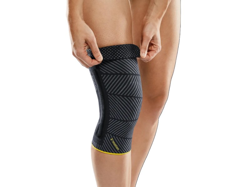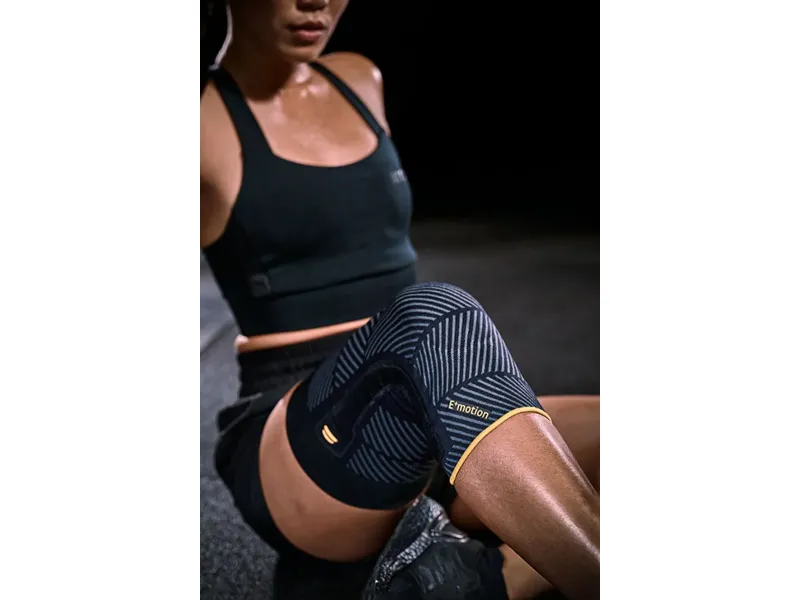 Επίδεσμος γόνατος υψηλής απόδοσης για συμπίεση των μαλακών ιστών με ενσωματωμένο τρισδιάστατο (3D) μαξιλαράκι σιλικόνης χαλαζία. Προσφέρει σταθερότητα, υποστήριξη και ήπιο μασάζ κατά την κίνηση, βοηθώντας στη μείωση οιδήματος και αιματώματος.