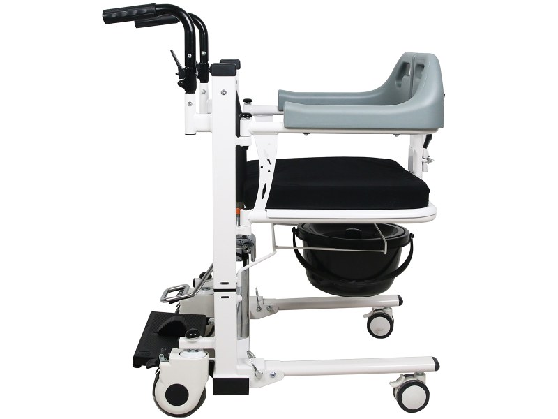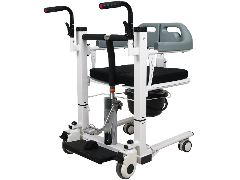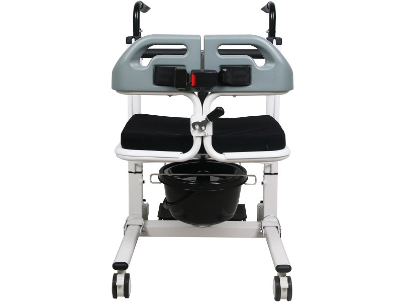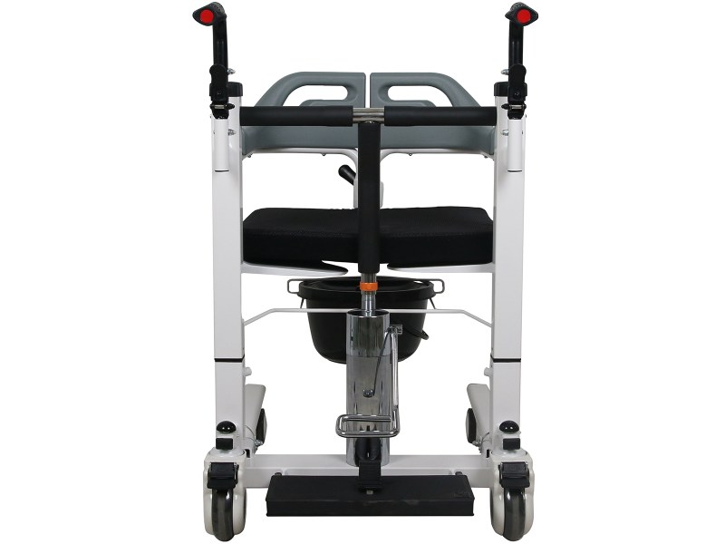 Διαθέτει υδραυλικό σύστημα ανύψωσης, το οποίο επιτρέπει την ομαλή ρύθμιση ύψους της βάσης του καθίσματος και του υποποδίου, προσφέροντας άνεση και ασφάλεια στον χρήστη και στον φροντιστή. Το αποσπώμενο υφασμάτινο μαξιλάρι καθίσματος πλένεται εύκολα, ενώ ο στιβαρός ατσάλινος σκελετός εξασφαλίζει αντοχή έως 120kg.