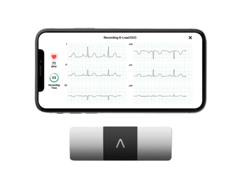 Δύο αισθητήρες στο πάνω και ένας στο κάτω μέρος. Καταγράψτε ένα ιατρικής ακρίβειας EKG μέσα σε 30 δευτερόλεπτα και λάβετε άμεση ανάλυση απευθείας στο κινητό σας.