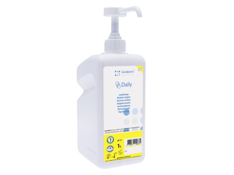 Το Daily είναι ένα απαλό, φιλικό προς το δέρμα υγρό σαπούνι, χωρίς άρωμα και χρωστικές, κατάλληλο για συχνό πλύσιμο χεριών, σώματος και μαλλιών. Περιέχει ενυδατικούς και μαλακτικούς παράγοντες που αναπλάθουν το λιπιδικό στρώμα της επιδερμίδας, καθώς και συστατικά προστασίας του δέρματος που διατηρούν τη φυσική ισορροπία υγρασίας στα βαθύτερα στρώματα της επιδερμίδας, συμβάλλοντας στη διατήρηση της αντοχής των δεσμών κολλαγόνου, της φυσικής απαλότητας και του φυσιολογικού pH του δέρματος.