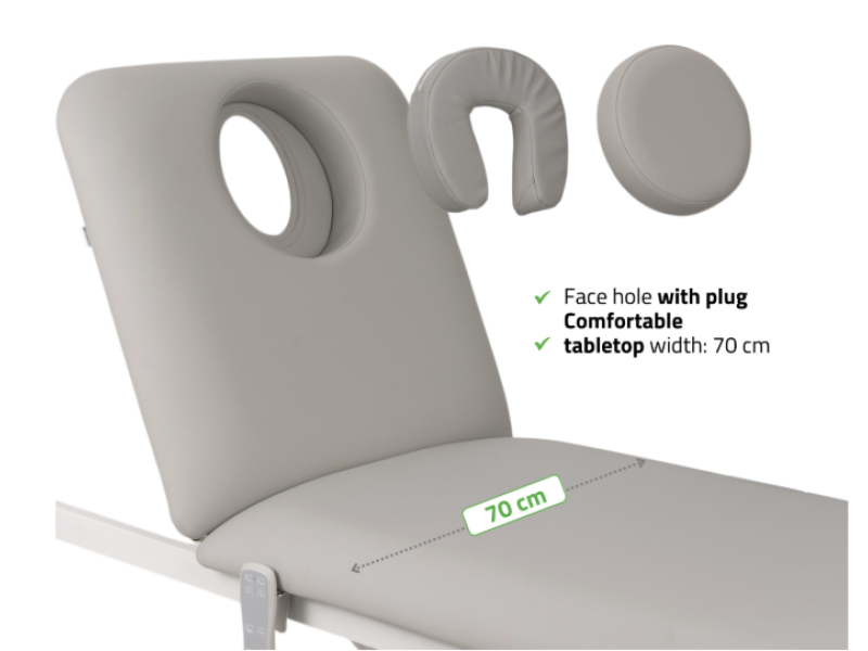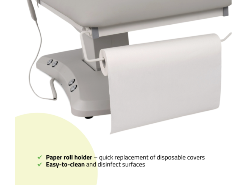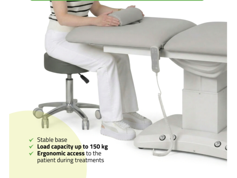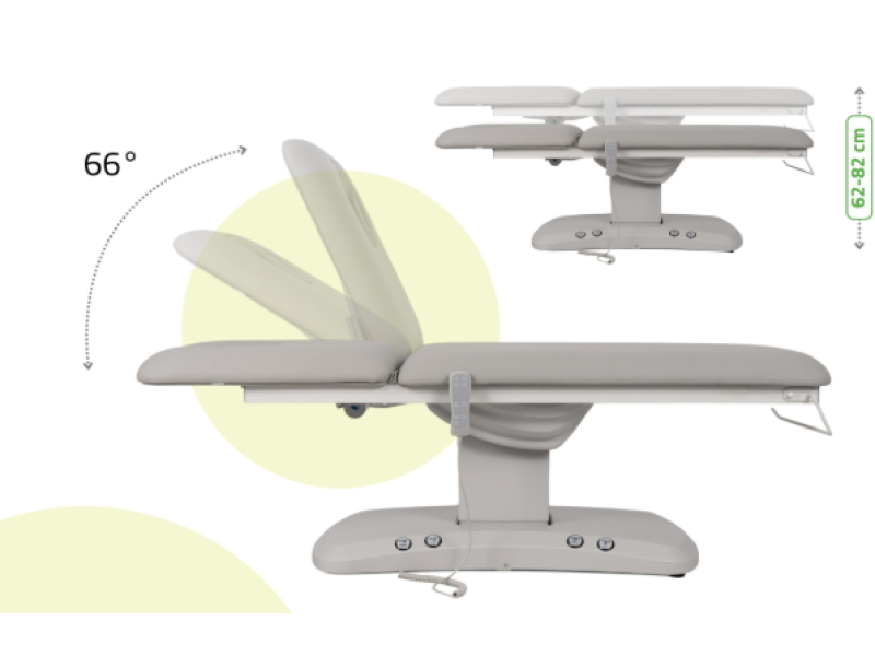 Με δύο ανεξάρτητα μοτέρ, επιτρέπει ακριβή ρύθμιση ύψους και κλίσης πλάτης, εξασφαλίζοντας ιδανική τοποθέτηση του ασθενούς κατά τη διάρκεια διαγνωστικών και θεραπευτικών πράξεων.