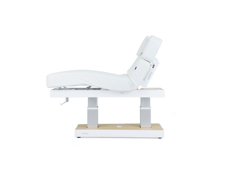 Η Nuuna Feel 4 είναι μια υπερ-πολυτελής επαγγελματική κλίνη spa, σχεδιασμένη για απόλυτη άνεση και λειτουργικότητα σε χώρους wellness, spa και αισθητικής. Διαθέτει 4 ηλεκτρικά μοτέρ και διπλή στήλη, που ρυθμίζουν το ύψος, την ανάκλιση της πλάτης, τη θέση των ποδιών και την ολική κλίση της κλίνης, καθώς και ρυθμιζόμενα μπράτσα, ενσωματωμένη θέρμανση, 3 θέσεις μνήμης, λειτουργία Lock, reset και ασύρματη φόρτιση.