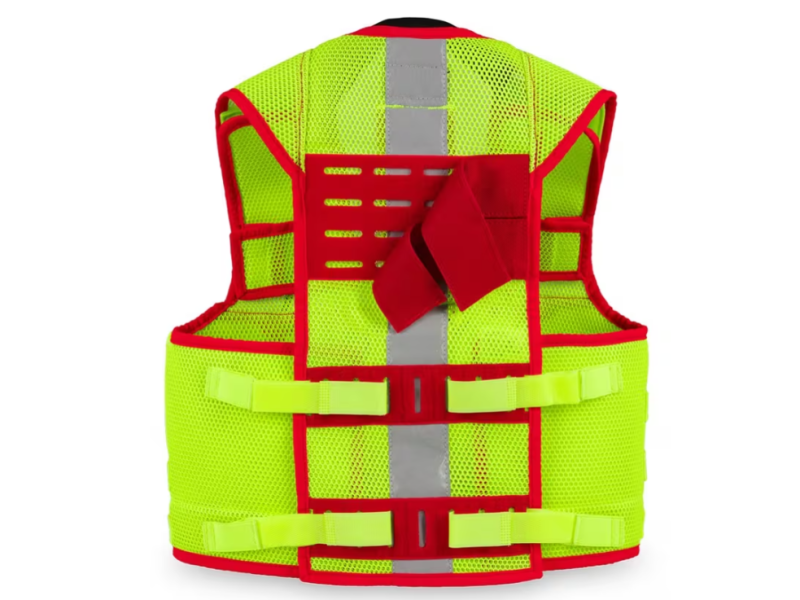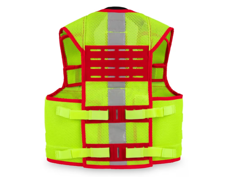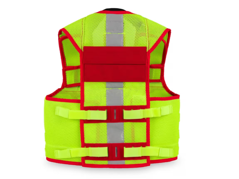 • High-visibility: fluorescent red and neon yellow with reflective strips around waist and back