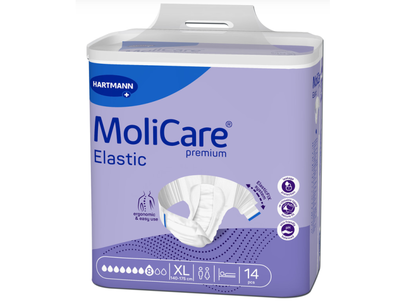The MoliCare® Premium Elastic 8 drops adult incontinence briefs are designed for men and women with severe incontinence, delivering maximum absorbency, protection, and comfort for both day and night use.