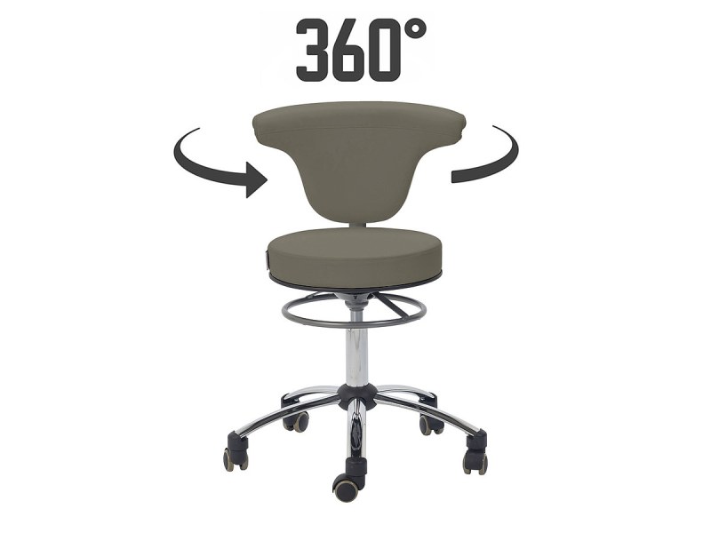The TEQLER is a modern ergonomic rolling stool ideal for general clinics, hospitals, and microbiology labs. It features an ergonomic backrest and a release ring for smooth and continuous height adjustment.
