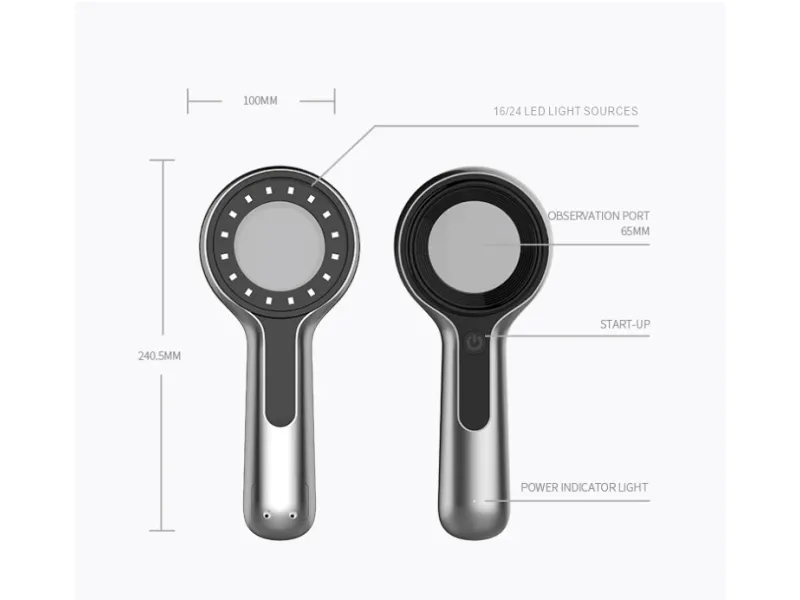 It features 16 LED bulbs with a 365nm wavelength, providing precise UV light emission for reliable diagnostics. Its portable design, equipped with a built-in rechargeable lithium battery, makes it ideal for medical, home, or field use. The aluminum alloy body ensures durability and long service life, supporting up to 50,000 hours of operation.