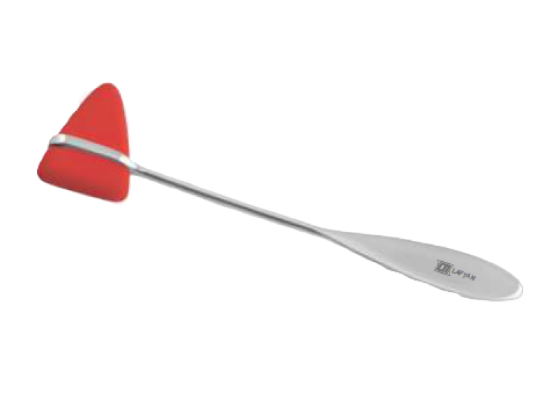 The Taylor Triangular Neuro Hammer is one of the most popular neurological hammers used for reflex testing. It features an ergonomic stainless steel (S.S.) handle with triangular synthetic rubber, ensuring a secure and comfortable grip during examinations.