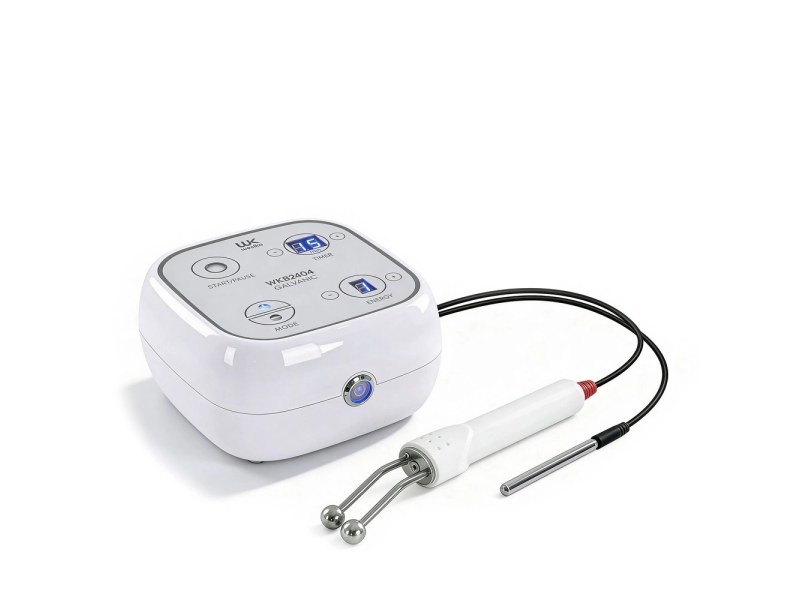 Modern digital galvanic equipment for professional use that utilizes direct current to facilitate the penetration of active ingredients in deep facial cleansings. It offers a constant intensity for a safe, effective, and homogeneous treatment.